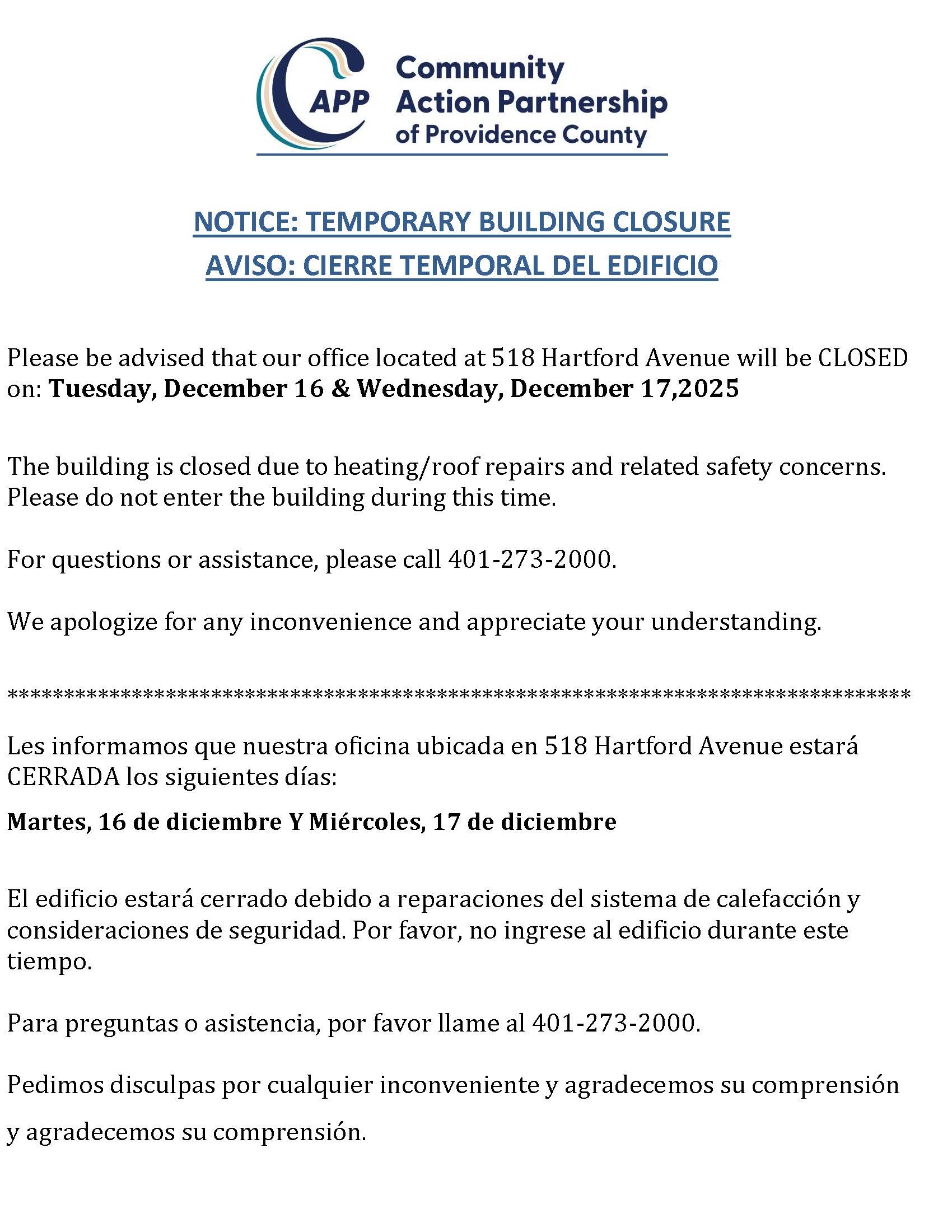 Beginning December 1st, representatives from CAPP’s LIHEAP team will be on-site at FSRI’s RISE Recovery Resource Center on select Mondays throughout the winter to help individuals and families stay warm, safe, and supported.