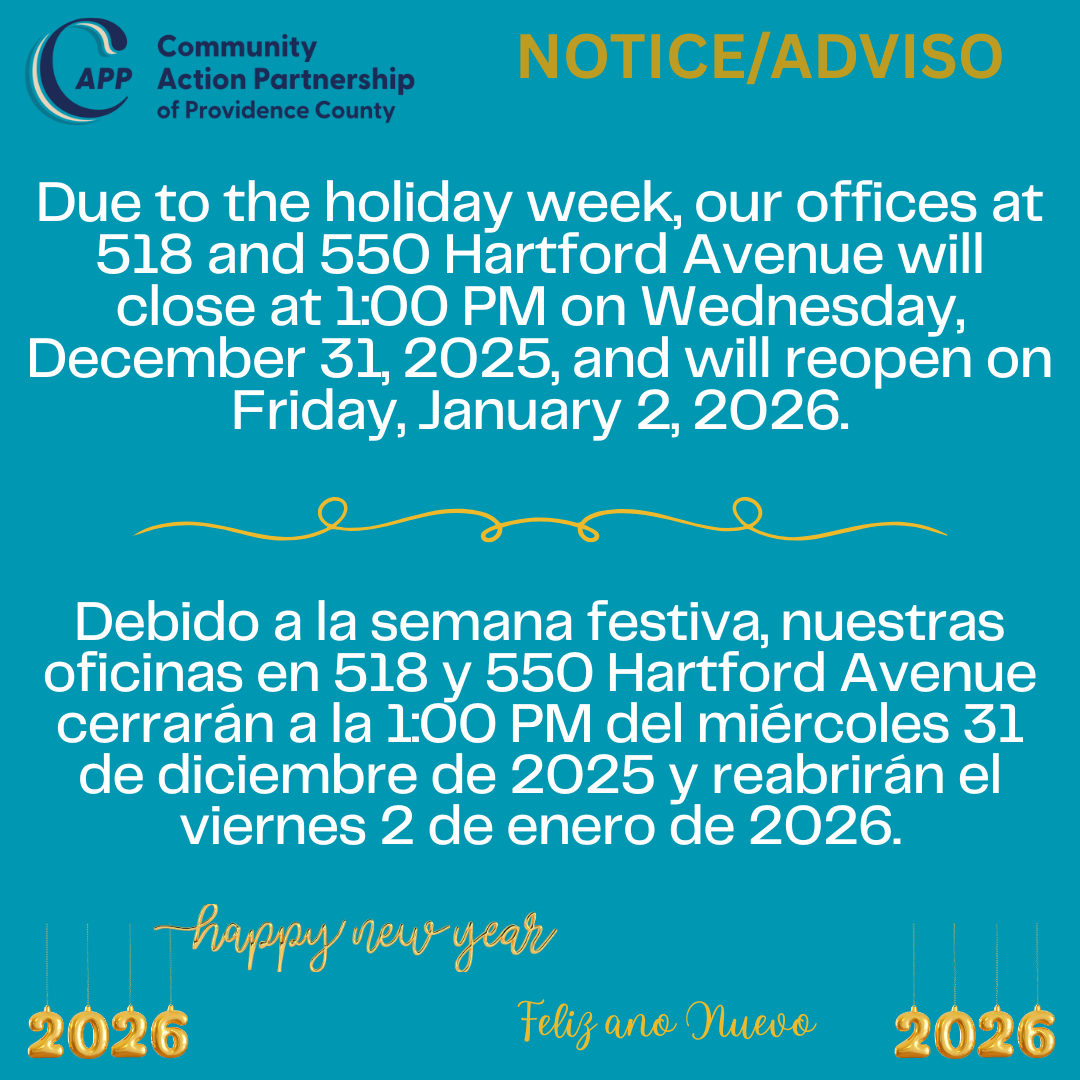 A partir del 1 de diciembre, el equipo LIHEAP de CAPP estará en el Centro RISE de FSRI algunos lunes del invierno para ayudar a las familias a mantenerse cálidas, seguras y apoyadas.