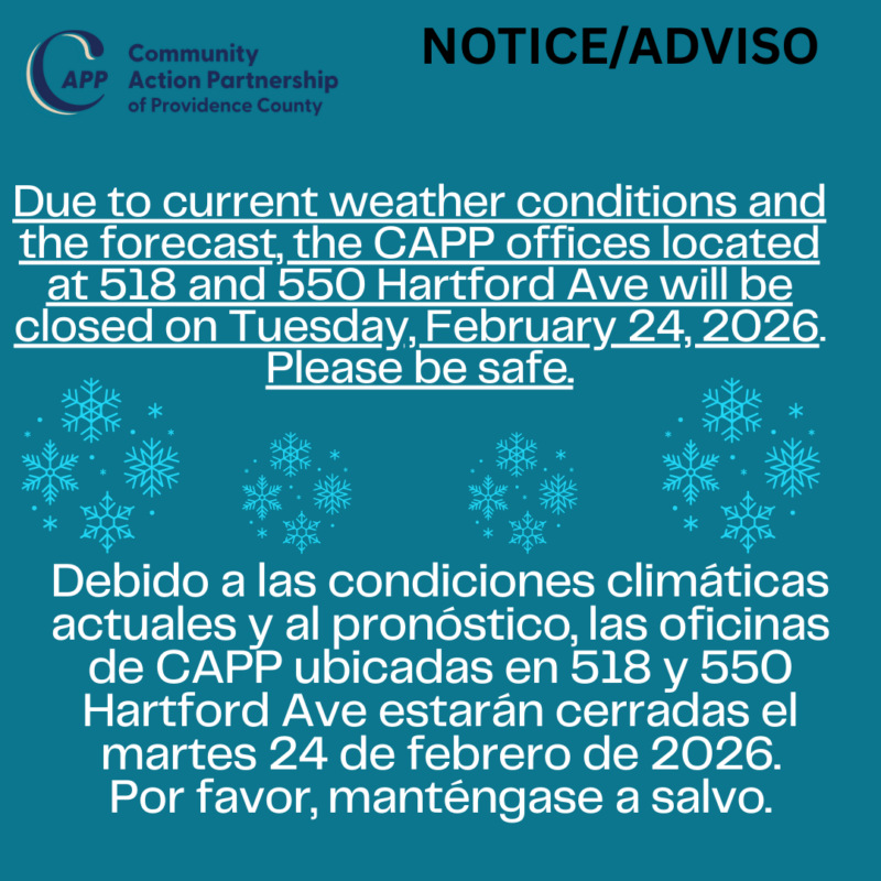 CAPP OFFICES CLOSED ON TUESDAY, FEBRUARY 26, 2026 DUE TO WEATHER.... STAY SAFE/LAS OFICINAS DE CAPP ESTARÁN CERRADAS EL MARTES 26 DE FEBRERO DE 2026 DEBIDO AL CLIMA... MANTÉNGASE SEGURO